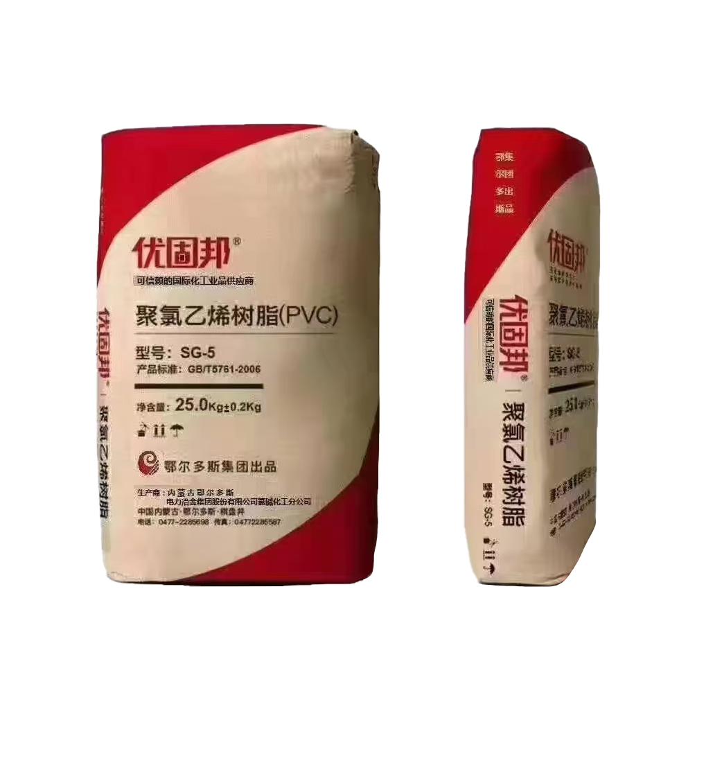 Product name: Polyvinyl chloride resin Model: SG-5. Net content: 25kg±0.2kg. Standard: GB/T5761-2006. Manufacturer: Inner Mongolia Erdos Electric Power Jinji Co. , Ltd. chlor-alkali chemical branch.